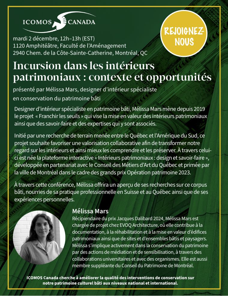 Conférence "Incursion dans les intérieurs patrimoniaux: contexte et opportunités" de Mélissa Mars