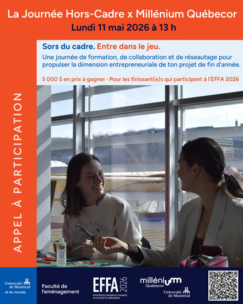 La Faculté de l’aménagement de l’Université de Montréal est fière d’annoncer la 33e édition de l’Exposition des finissantes et finissants de la...