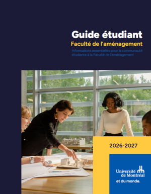 Téléchargez ce guide dans lequel vous trouverez toutes les démarches et informations essentielles pour votre parcours à la Faculté de l’aménagement et à l’Université de Montréal.