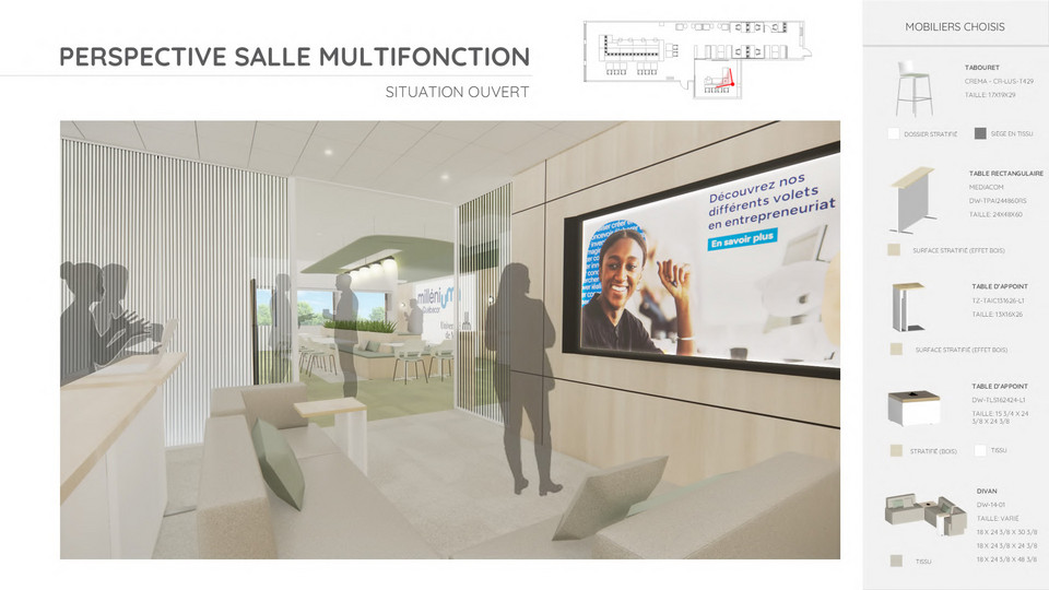 Aménagement d’un hub entrepreneurial pour MilleniUM Québécor, projet par Emma Descheneaux, Amélie-Rose Colin et Capucine Calteau